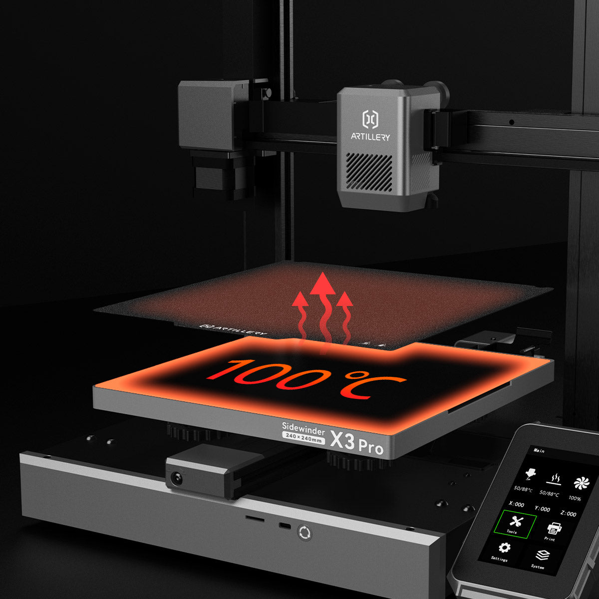 The heated platform can reach temperatures of up to 100°C, providing excellent adhesion for a variety of materials, including PLA, ABS, and PETG.  This ensures stability and reduces warping during printing, even for more challenging filaments.